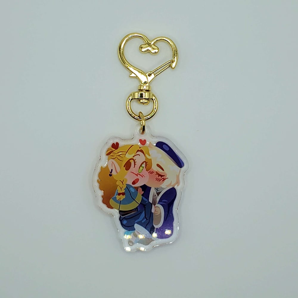 2'' glitter epoxy double-sided charms featuring two ships from Dungeon Meshi or Delicious in Dungeon! Marcille x Falin and Kabru x Laios. All orders come with a free 1'' Laios sticker now! If you want the Laios sticker by itself, feel free to attach him down below.