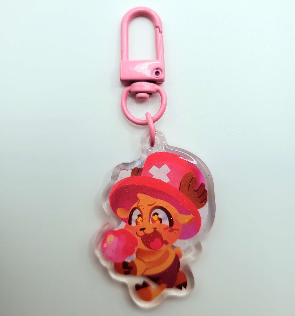 2'' glitter epoxy charms featuring all of the Strawhats and a special ship charm! The Chopper and ship charms are double sided. The Yamato x Ace charm has one side with their canon appearances, while the backside features them both with top surgery scars. The Chopper on one side featuring his pre-timeskip design and his post-timeskip design. Every order comes with a doodle.