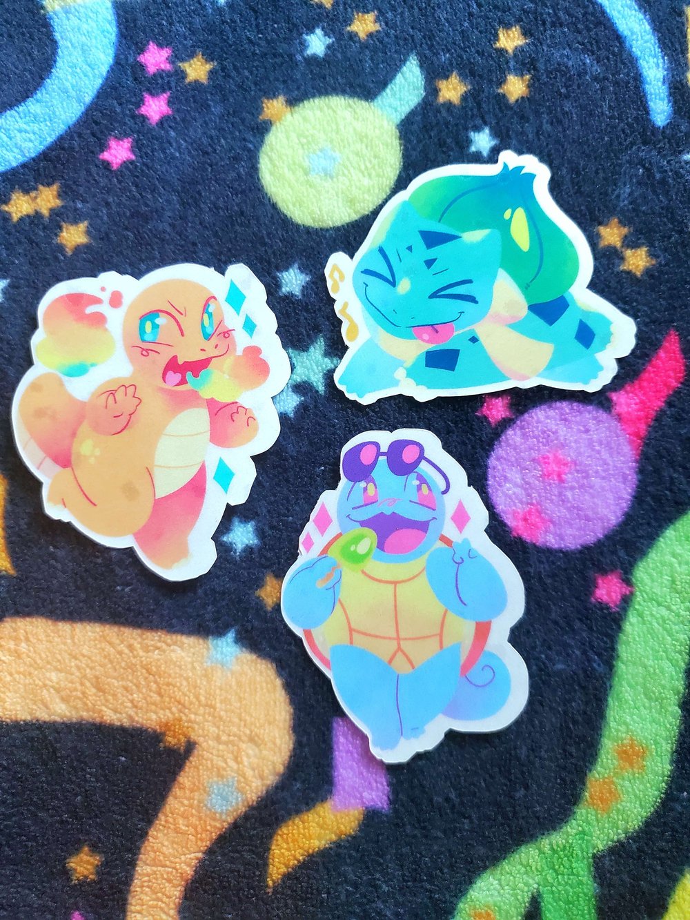 Approx. 3'' stickers of the Pokemon starters! My goal is make stickers of every single starter, so check back for updates! Every order comes with a free sticker and doodle. If you have a specific request leave one in the notes section.